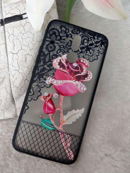 Silikonska mat prozirna maskica sa crnim rubom i uzorkom.